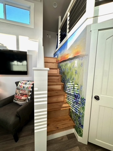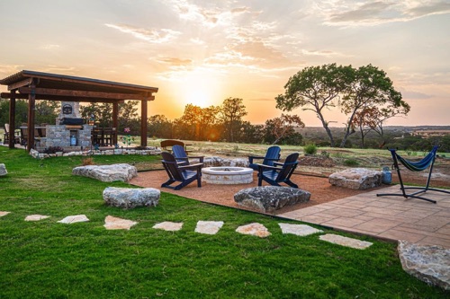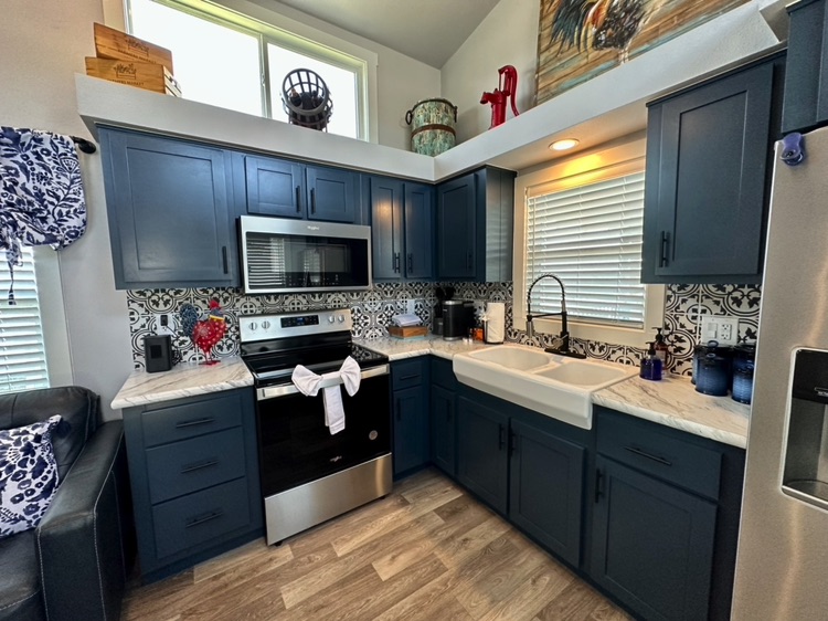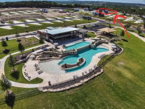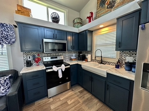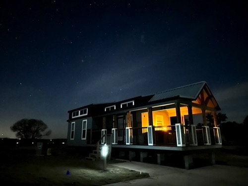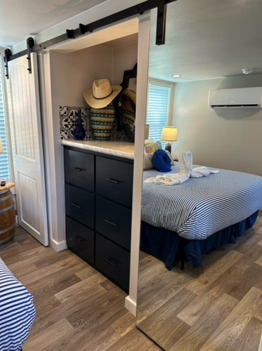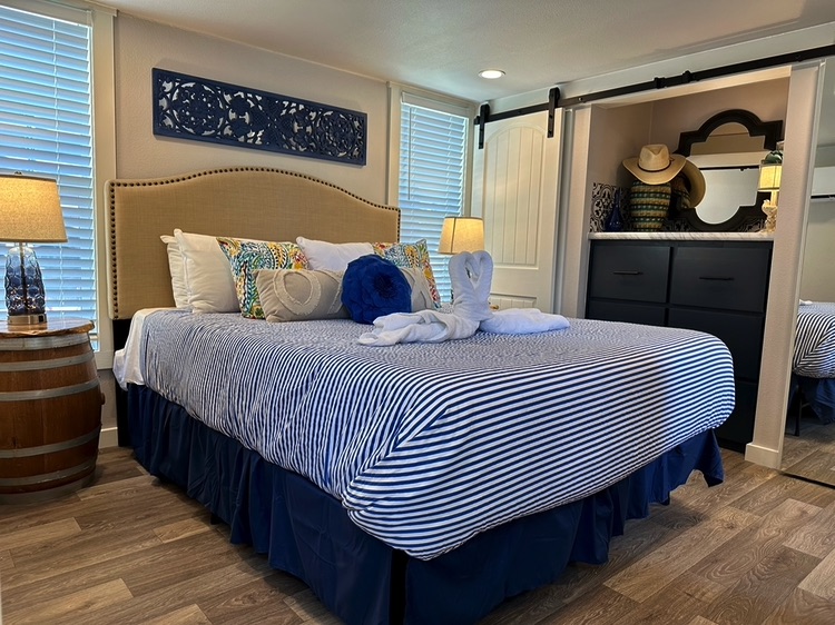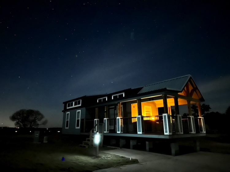 Casita del Campo site 77 is located at Firefly Luxury RV Resort in Fredericksburg, TX. About 15 minutes away from downtown Fredericksburg. Nestled in the serene Hill Country, this cozy tiny home offers a tranquil retreat surrounded by nature. With its rustic charm and scenic views, it provides the perfect escape for those seeking a peaceful getaway. Enjoy the simplicity of a small, well-designed space, complete with warm interiors, comfortable sleeping, a front porch, and a private backyard patio that invites you to unwind while soaking in the beauty of the rolling hills. Firefly offers live music at the resort style clubhouse on Fridays and Saturday nights, along with food trucks make it so convenient. Bring your own golf cart or rent one from Firefly.